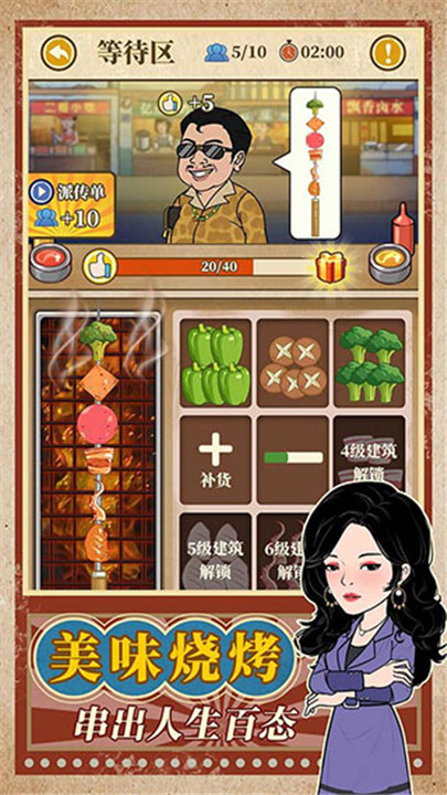 玩家可以给自己设计个性人物形象,自由经营自己的烧烤摊。