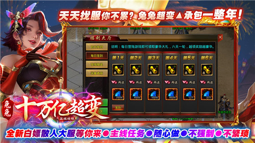下载兔兔十万亿超变是一款全新的热血传奇类游戏,多种刺激的副本等你来挑战,同时还融入了打金的玩法,给玩家一场十分畅快的传奇体验,上线就有丰厚的福利可以获得,随时开启属于你的传奇挑战之旅。