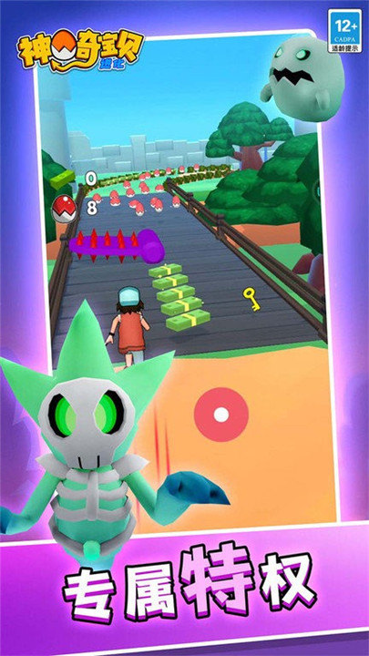 1、经典神奇宝贝题材,结合跑酷玩法,轻松有趣又刺激。