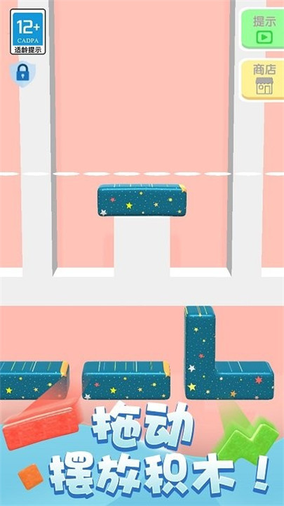 操作简单,轻松上手不设限:拖动积木填满区域即可消除,无时间压力,适合各年龄段玩家随时玩上一局。