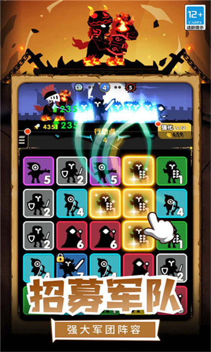 2、通过点击兵种将两个相同等级的兵种合成一个更高等级的骑士角色,从而获得更加强大的战斗力。