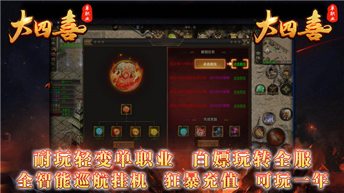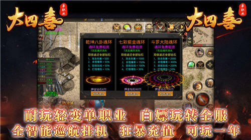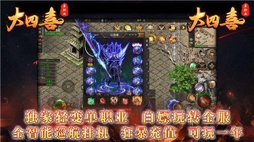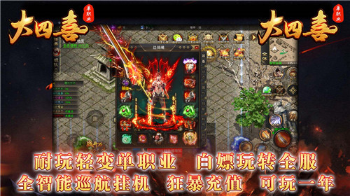下载大四喜单职业是一款福利超棒的热血传奇类游戏,游戏中超多丰富的资源等你来获得,玩家可以尽情享受热血十足的对战体验,特色的副本随时等你来尝试,尽情开启属于你的热血传奇之旅。