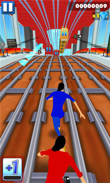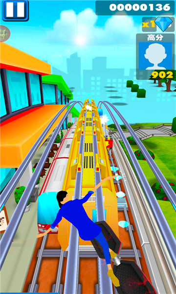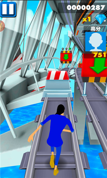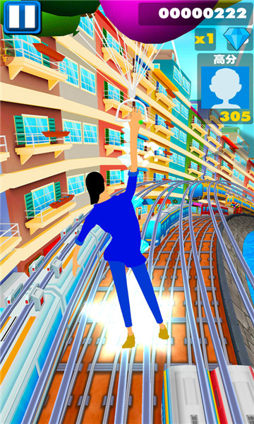 3、向上滑动,人物即会向前跳跃,跳过障碍,但是高一点列车等的是跳不过的。