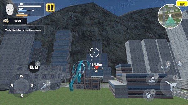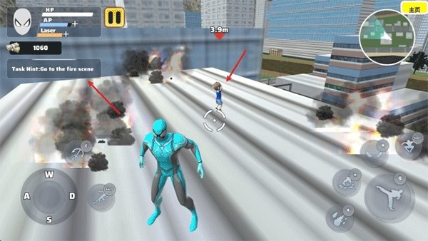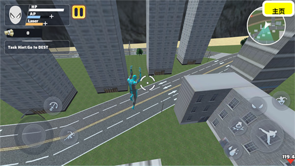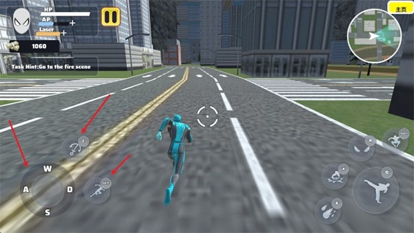 3、游戏界面左侧设有摇杆用于控制角色移动,相邻按钮则可用于释放绳索及执行加速操作,提升机动性。