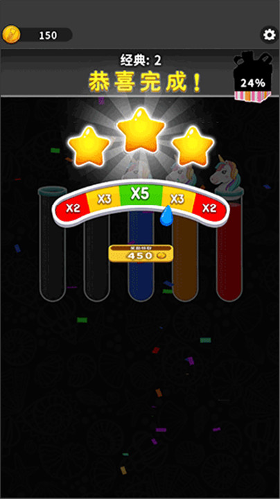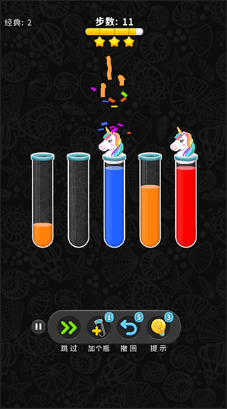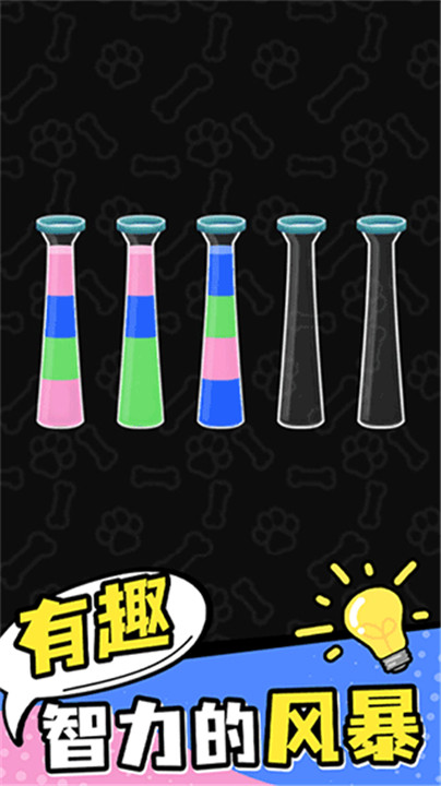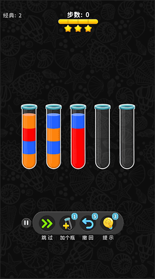 1、在每个瓶子里正确地排列颜色,玩家只能有空间的情况下倒入相同颜色的水。