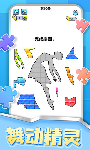 下载烧脑拼图达人是一款非常考验智慧的休闲益智类闯关游戏,游戏玩法十分简单,根据每一关的情况来做出选择,利用给出的物品来拼接到一起,从而呈现一个图形顺利完成挑战,尽情感受一场全新的拼图体验。