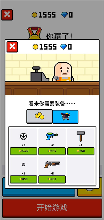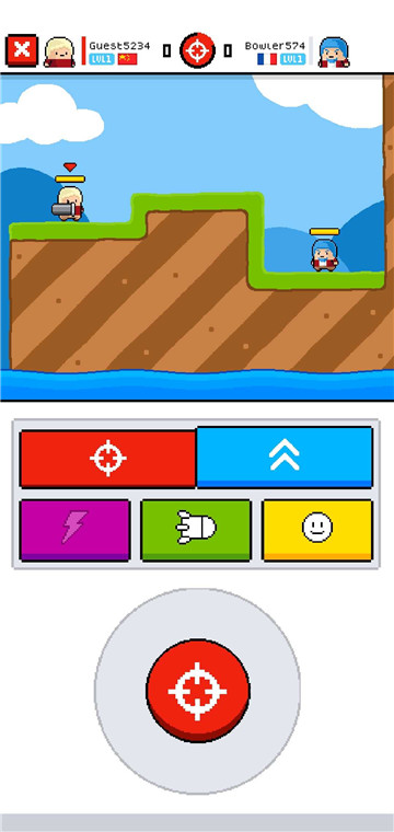 卡通场景中玩家需要选择自己想要使用的武器,调整好瞄准对手的角度,按下发射。