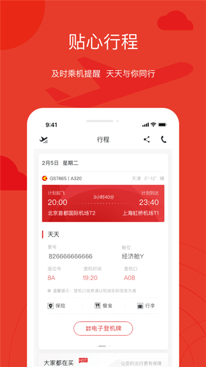 2.支持手机上购买航班的增值服务,包括买行李、订餐食等