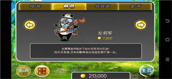 成长系统与角色切换:熊猫可升级变强,解锁李小熊、左将军等角色,体验不同技能带来的跑酷快感,趣味十足。