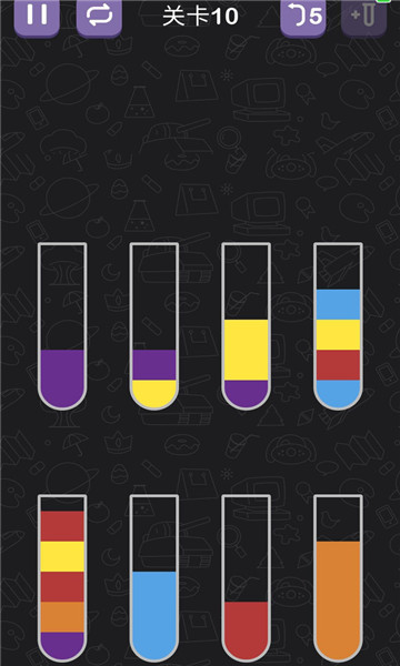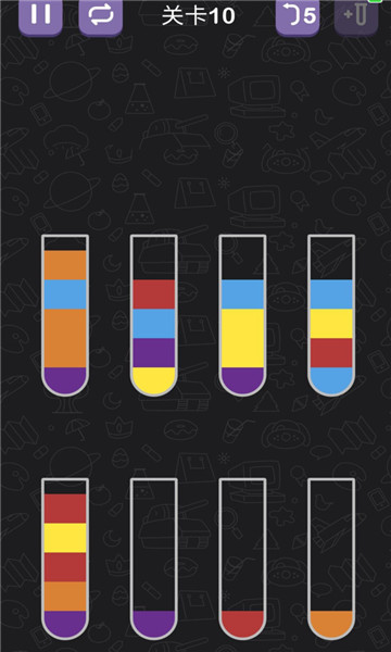 2、关卡越到后面越难,不同颜色的水数量会越多,需要你利用策略与智慧来完成挑战。