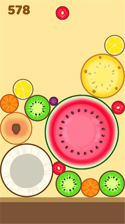 合个大西瓜看似简单却令人上头的合成休闲小游戏,整体画面采用清新卡通风格,色彩明快、视觉舒适。游戏的核心机制是通过手指滑动控制水果的下落方向,让相同种类的水果合成,逐步进化出更大的品种,直至最终生成大西瓜。每一步操作都需要策略规划,既要计算水果的落点,也要预判合成后的形状和位置,占用的空间越小,合成效率越高。随着游戏进行,水果越合越大,空间越来越紧张,极具挑战性却又让人欲罢不能。虽然操作门槛低,但想要拿高分却考验极强的空间感与预判力。