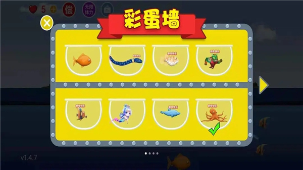 除了基础模式之外,游戏中还有无双模式、异兽世界、宇宙空间等等,这些都是玩家们可以随意挑选的,并且,在这款游戏中,还有大量鱼的种类皮肤,每个都拥有着各自独特的能力。