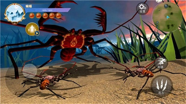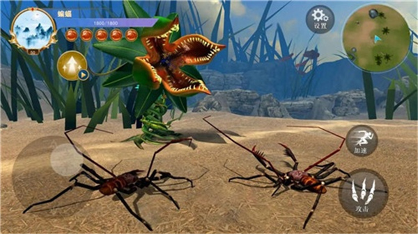 1、进入游戏后,通过左边的摇杆灵活控制蜘蛛,移动到猎物身边,然后点击攻击按钮开始猎杀。