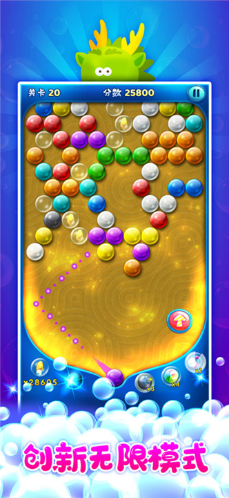 1、原始的经典泡泡龙挑战,带给你更多的乐趣。