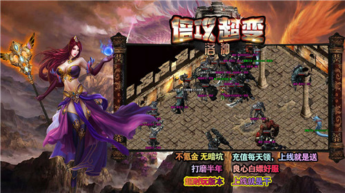 下载洛神倍攻超变是一款十分畅快的传奇类游戏,整个过程十分自己,玩家可以完成这里的探索,在这里获得丰厚的奖励,更好的沉浸在刺激的对战当中。整个过程爆率超高,轻松就能爆出材料和装备,让玩家获得更多乐趣。