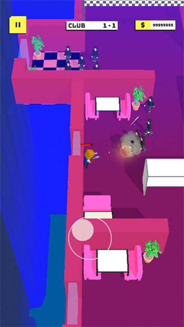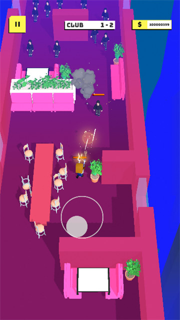 玩家可以解锁各种武器,持续提高自己的攻击力,帮派的保安会试图阻拦玩家,枪战射击过关斩将是一种很好的缓解压力的方式,操纵着两把手枪的主角冲进了一家夜店,对着他们就是一阵扫射,开启多种不同场景地图的挑战关卡。