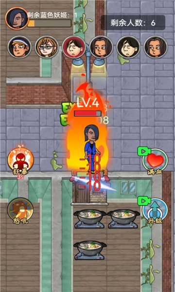 3、升级你的大门和火锅防御塔,只有这样才能赶跑包租公蓝色妖姬。