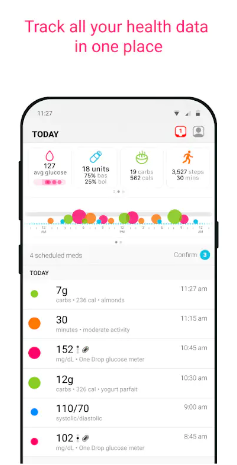 记录血糖、药物、食物、活动、体重、血压等等——所有这些都集中在一个地方。