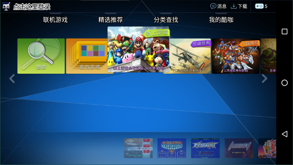 下载酷咖游戏tv版是一款很多不错的游戏盒子,让大家可以在家里的智能电视上体验到更多红白经典欧系,街机、任天堂、世嘉游戏等,让玩家们可以重温美好的时光。