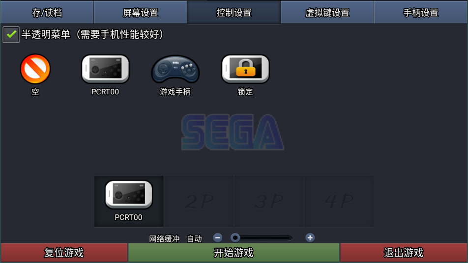 2、虚拟手柄点击屏幕左上角的菜单键,外接手柄同时按下“select”和“start”键。调出游戏菜单页。