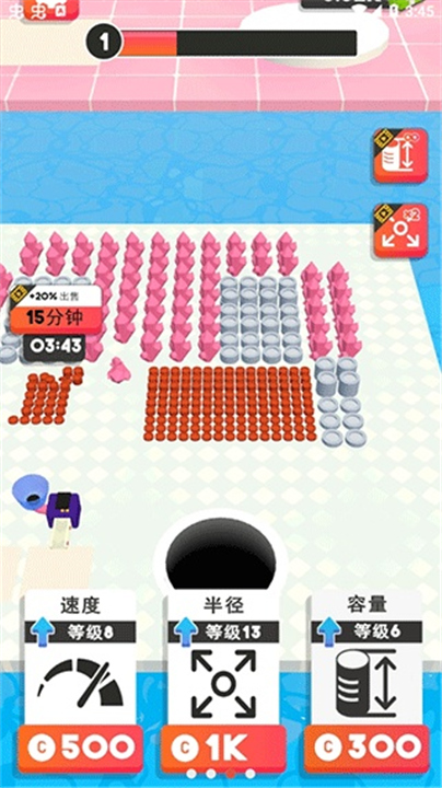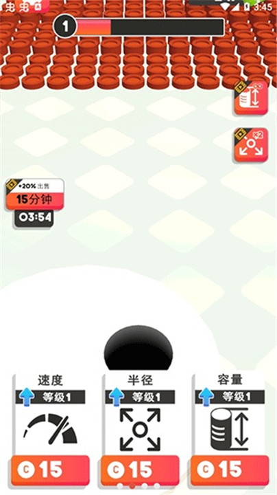 4.然后控制黑洞去捡钞票,带到升级台,就可以用这些钞票升级黑洞的各种属性哦。