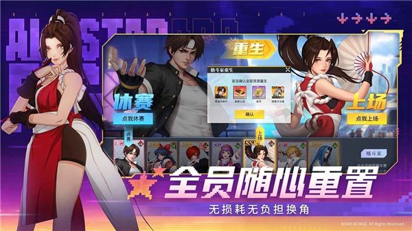 下载全明星激斗下载是集结SNK众多经典角色的动作卡牌手游,带来跨越时代的热血对决体验。游戏以极致还原的格斗场面与创新连击系统,让每位玩家都能轻松释放超酷炫技能。经典人物悉数登场,独特剧情演绎英雄们之间的全新羁绊与冲突,竞技、养成、合作多种玩法丰富多样。立即下载安装全明星激斗手游,与草薙京、不知火舞等人气角色并肩作战,开启属于你的全明星传说!