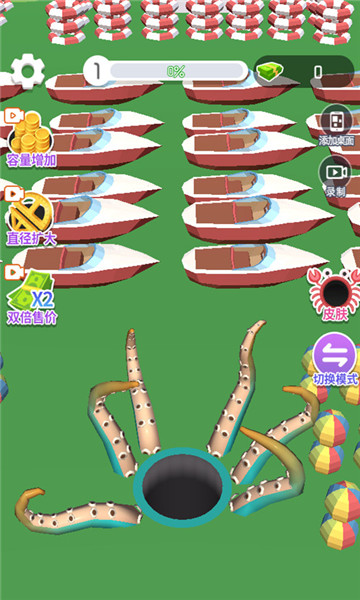 2、游戏中各种不同的道具物品等你使用,帮助你更加快速的吞噬掉一切物品。