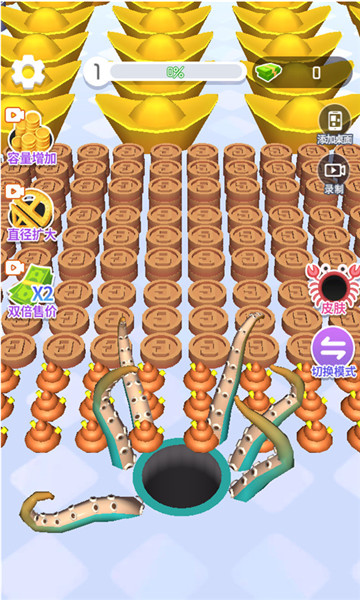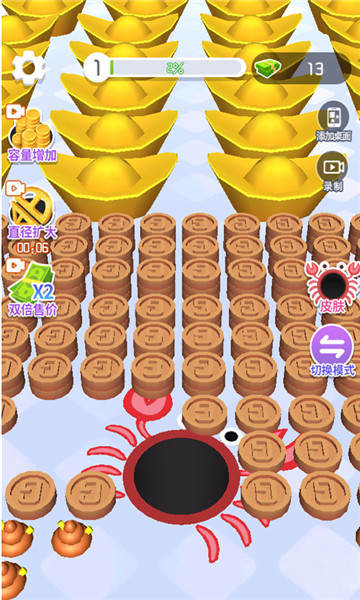 1、吞噬物品的多少决定了关卡所获得的收益,获得收益后可以升级黑洞的移动速度和容量等。