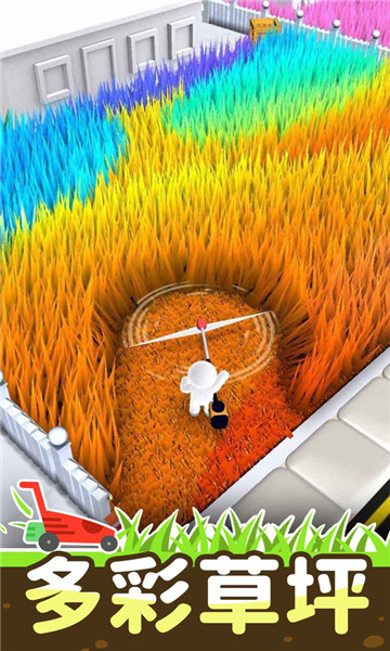 2、简单的按住屏幕用割草机在彩虹般的杂草中肆意旋转即可。