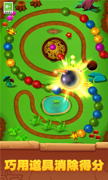 3、玩家可以在困难的时候巧妙运用道具来完成消除,顺利消除不同颜色的球。