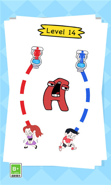 下载上厕所太难是一款十分魔性的休闲益智类闯关游戏,玩家需要通过画线的方式来帮助角色顺利找到厕所,一路上还有各种危险阻碍你的前进,千万不要让角色憋坏,解决各种难度,感受充满乐趣的闯关方式。