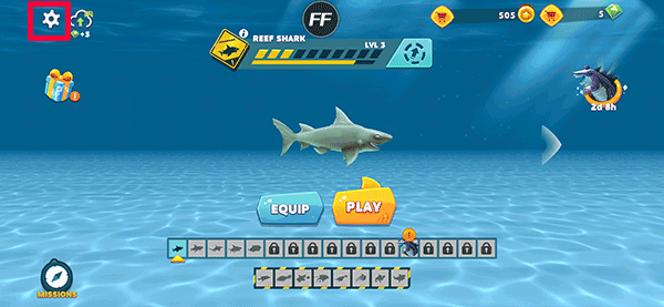 1、打开饥饿的鲨鱼进化手游,在游戏主界面找到并点击左上角的“齿轮”按钮;