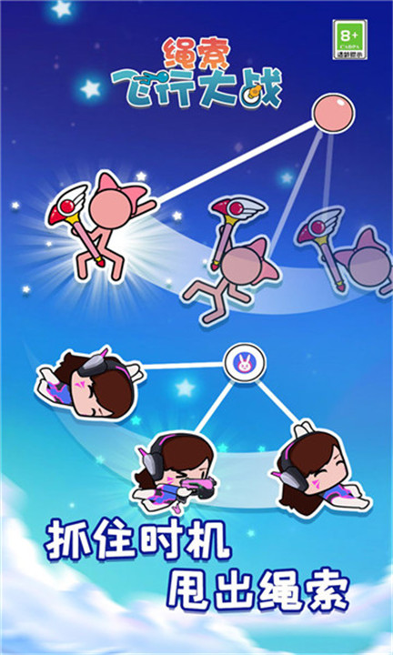 绳索飞行大战小游戏下载给玩家带了了充满乐趣的休闲手游,玩家将操控角色在摇摆的绳索之间灵活跳跃和前进。在绳索飞行大战安卓版下载中,玩家需要把握好绳子晃动的节奏,找准时机将角色的绳索甩出完成移动。绳索飞行大战下载有着简单且容易上手的操作,再加上富有挑战性的关卡设计,为玩家带来既轻松又能享受闯关的成就感。
