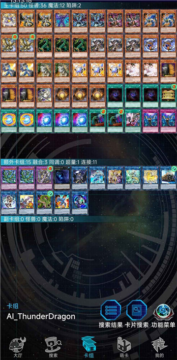 在海量的卡牌库中,可以选择多种类型的卡牌,通过文字搜索、效果、名称等方式,搜索卡牌的速度很快。