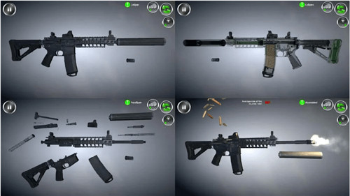 枪械种类繁多,有趣的挑战方式,细致的分解程序,可以拆卸和装配各种枪械。