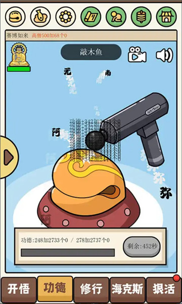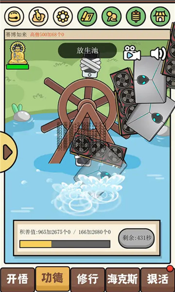 1、在这里你可以用筋膜枪敲木鱼积攒功德,用循环放生机积德行善。