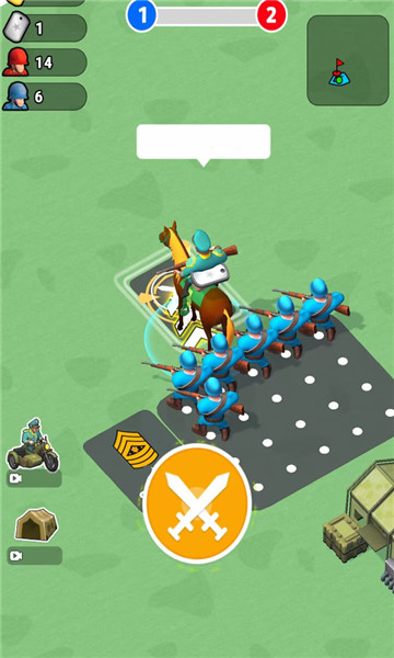 1、游戏中玩家需要招募一只自己的军队,需要不断击败敌人来获得军工牌。