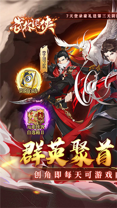 1、玩家通过卡牌收集与养成,搭配各门派侠客组成强力阵容,利用羁绊与技能策略战斗。