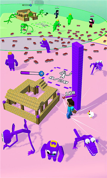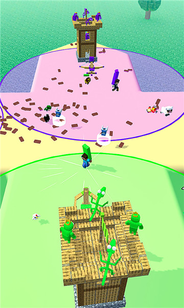 1、建立你的彩虹怪物军队,收集砖块并以最快的速度建造塔楼,同时防御你的工艺塔。