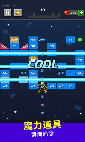 2、还有各种道具可以使用,轻松帮你消除砖块。