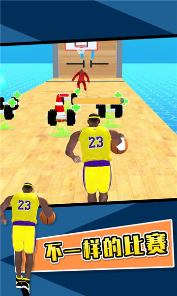 2、仔细进行观察,避开各种危险和陷阱,感受一场有趣的篮球跑酷。