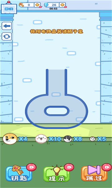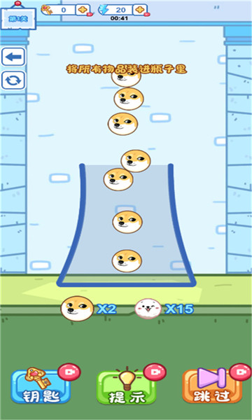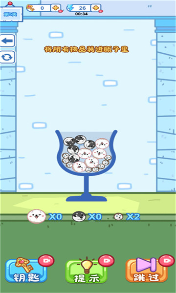 1、玩家需要在不同的关卡中将大小不一的球放进不同形状的玻璃瓶中。