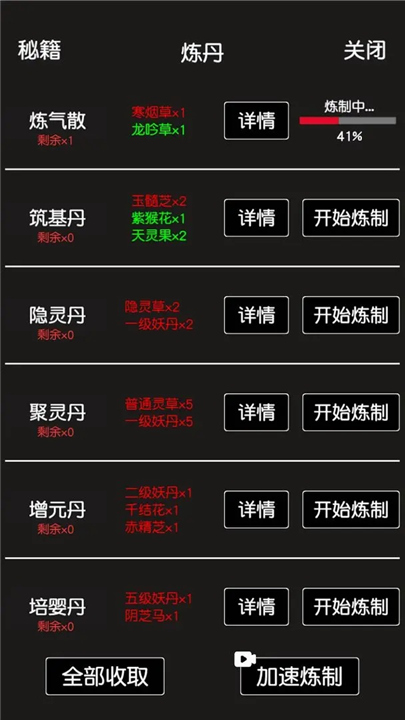 可以炼制出自己想要的丹药来辅助修炼,在炼丹的过程中,修为会突飞猛进,只需要收集一些药材。
