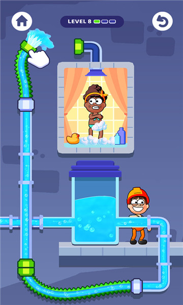 下载把他组装起来是一款考验玩家智慧的休闲益智类闯关游戏,游戏中玩家需要组装管道,将水顺利接到家中,顺利让角色有水进行洗澡。丰富的关卡设计,整个过程十分烧脑,让玩家更好的沉浸在挑战当中。