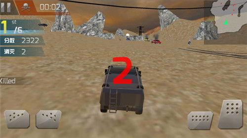 1、玩家只需要通过控制方向和前进后退即可操作汽车,同时避免对手对你造成的攻击。