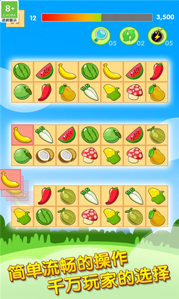 2、消除的水果越多获取的分数就越高,后续的难度也会逐渐增加。