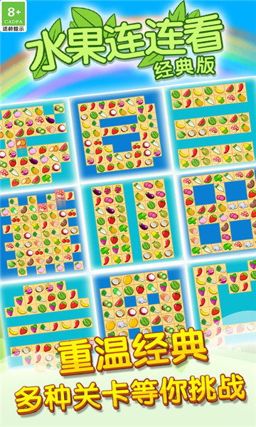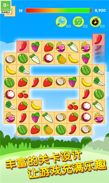 下载开心水果连连看2是一款采用经典玩法的消除类游戏,在这里玩家需要完成超多挑战,尽情感受一场手速与眼力的大比拼。整个操作十分简单,玩家可以感受充满乐趣的体验,不论你是菜鸟还是高手,都可以轻松上手。