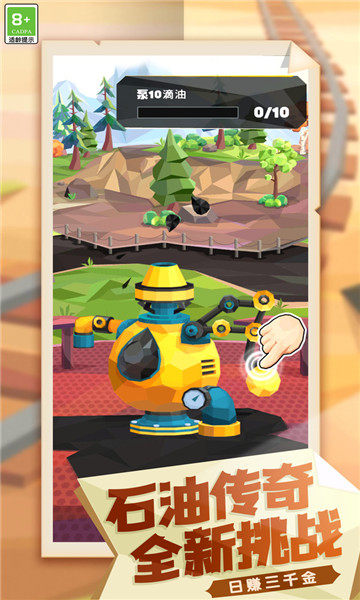 下载日赚三千金是一款玩法十分有趣的模拟经营类游戏,游戏中玩家将化身为一名石油大佬,需要你四处寻找新的开采地点,开采的石油越多,获得到的收益就越多,这样就可以早日实现财富自由,努力通过开采的任务来完成。