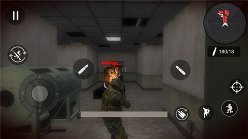玩家可以在游戏中按下方向和开火按钮,操控人物的动作,提升自己的枪法,子弹一发也不能浪费。