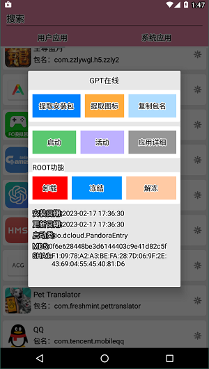 1、可以快速启动各种软件,应用卸载、分享、查看信息等都可以在包名查看中获取到相应的功能。
